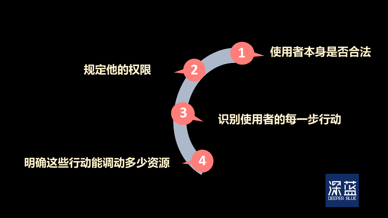 驗(yàn)證一共需要在四個(gè)環(huán)節(jié)中進(jìn)行:驗(yàn)證信息使用者是否合法是否可信任;如果是可以被信任的的,那么還需要規(guī)定他的權(quán)限;規(guī)定好權(quán)限后,要驗(yàn)證他每一步的行動(dòng);最后還需要驗(yàn)證他的行動(dòng)能夠調(diào)動(dòng)多少資源。