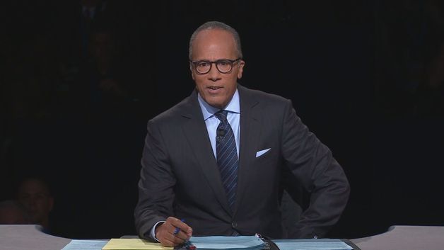 特朗普與希拉里的競選團隊相繼入場,會議主席Lester Holt 就坐,美國大選首場電視辯論正式開始。