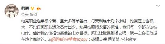 韓寒自己也表示,電競(jìng)職業(yè)選手很辛苦。