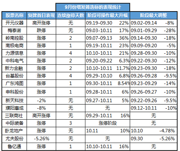9月份主要復(fù)牌增發(fā)公告篩選內(nèi)容