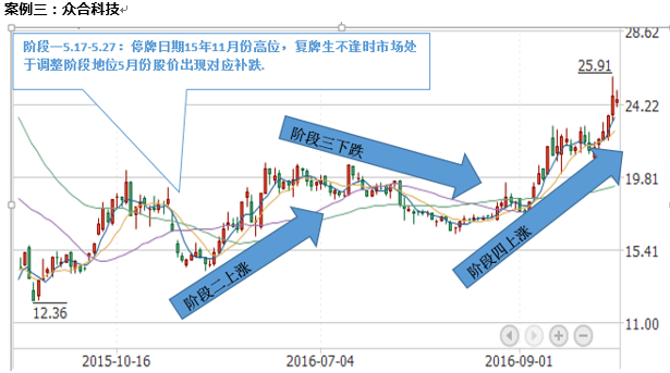 4.定增復(fù)牌出來處于市場震蕩階段,短期未有表現(xiàn),中期1-2個(gè)月走出震蕩上揚(yáng)(績優(yōu)、公司不屬于小市值殼資源公司,所處行業(yè)景氣、有業(yè)績支撐)俗稱白馬/績優(yōu)定增,16年成功案例:4月份復(fù)牌的(凱樂科技、中天科技、亨通光電、聯(lián)創(chuàng)光電)